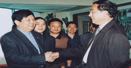 全國政協(xié)副主席、中共中央委員、中國殘聯(lián)主席鄧樸方先生與鄭州臺(tái)州商會(huì)支部書記兼秘書長(zhǎng)、《百花散》傳人梅安富先生親切交談鄭州市腫瘤康復(fù)協(xié)會(huì)名譽(yù)會(huì)長(zhǎng)。2005年5月,作為臺(tái)州古代中醫(yī)秘方梅氏《百花散》