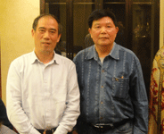 中國抗癌協(xié)會(huì)常務(wù)理事、河南省抗癌協(xié)會(huì)會(huì)長(zhǎng)楊文獻(xiàn)教授和《百花散》傳人梅先生合影